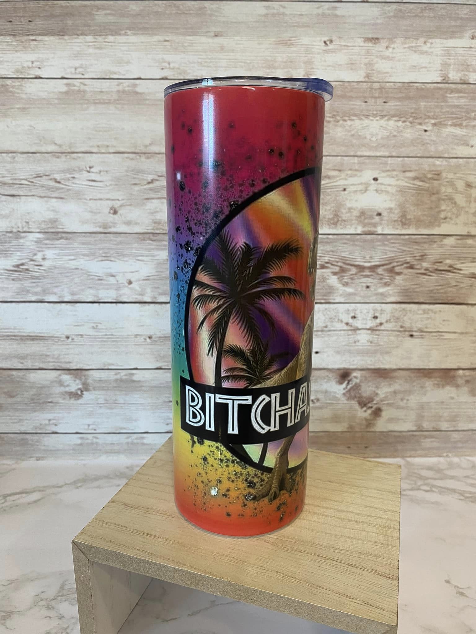 This trendy travel tumbler is printed using a sublimation process creating a smooth, printed finish that won't peel nor fade.
