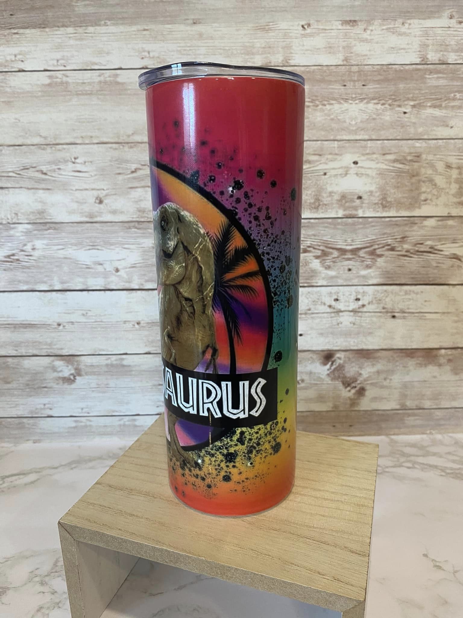 Tumbler holds 20 oz of your favorite beverage; has a plastic lid and comes with a reusable straw. Some of the mockup photos show a metal straw, these come with reusable plastic straw.