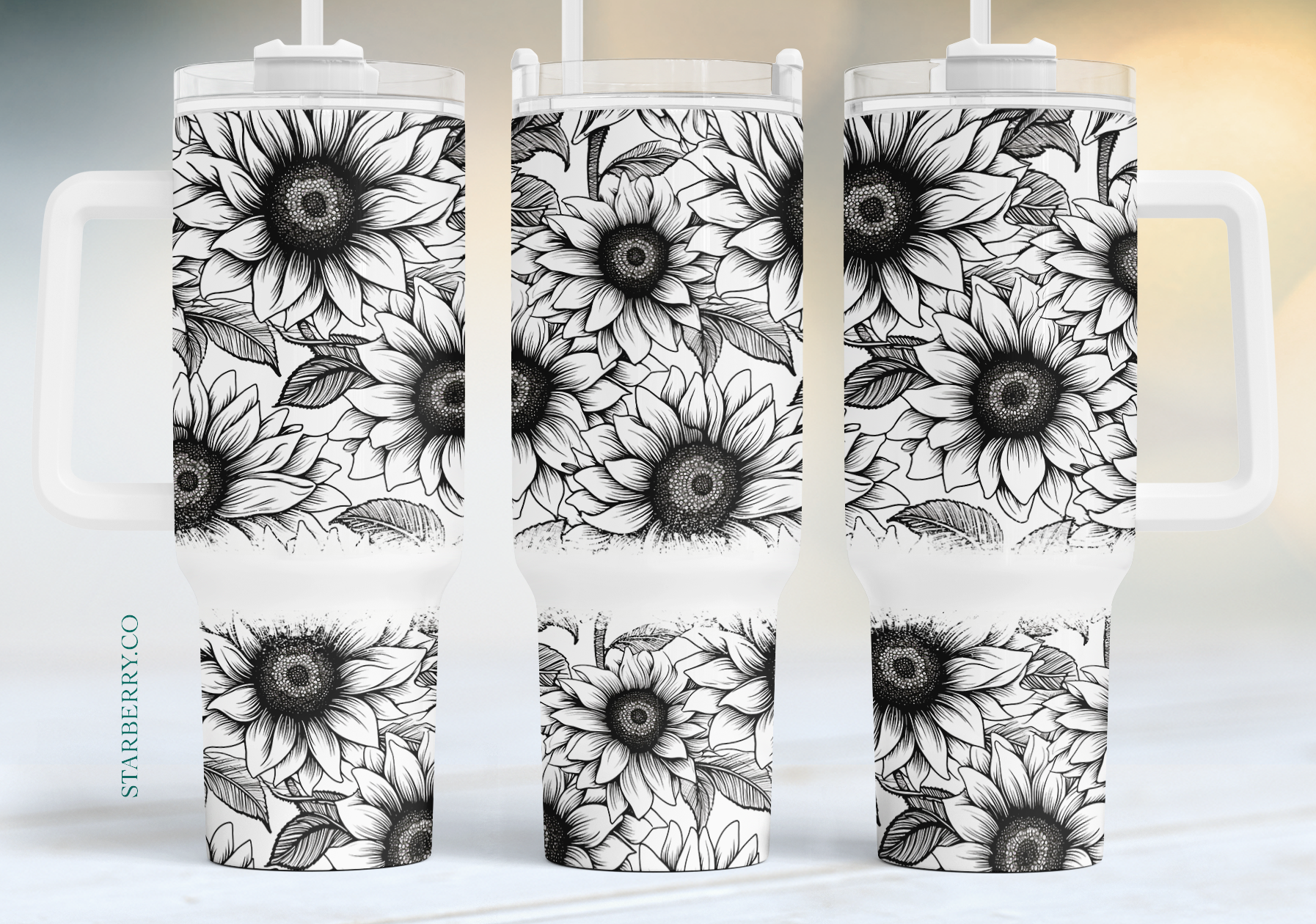 My current inventory has the silver at the top and white handles, my mockups do not reflect those details. Mockups serve to show the image, note that the product you receive will have the silver at the top, white handle and the image you chose.