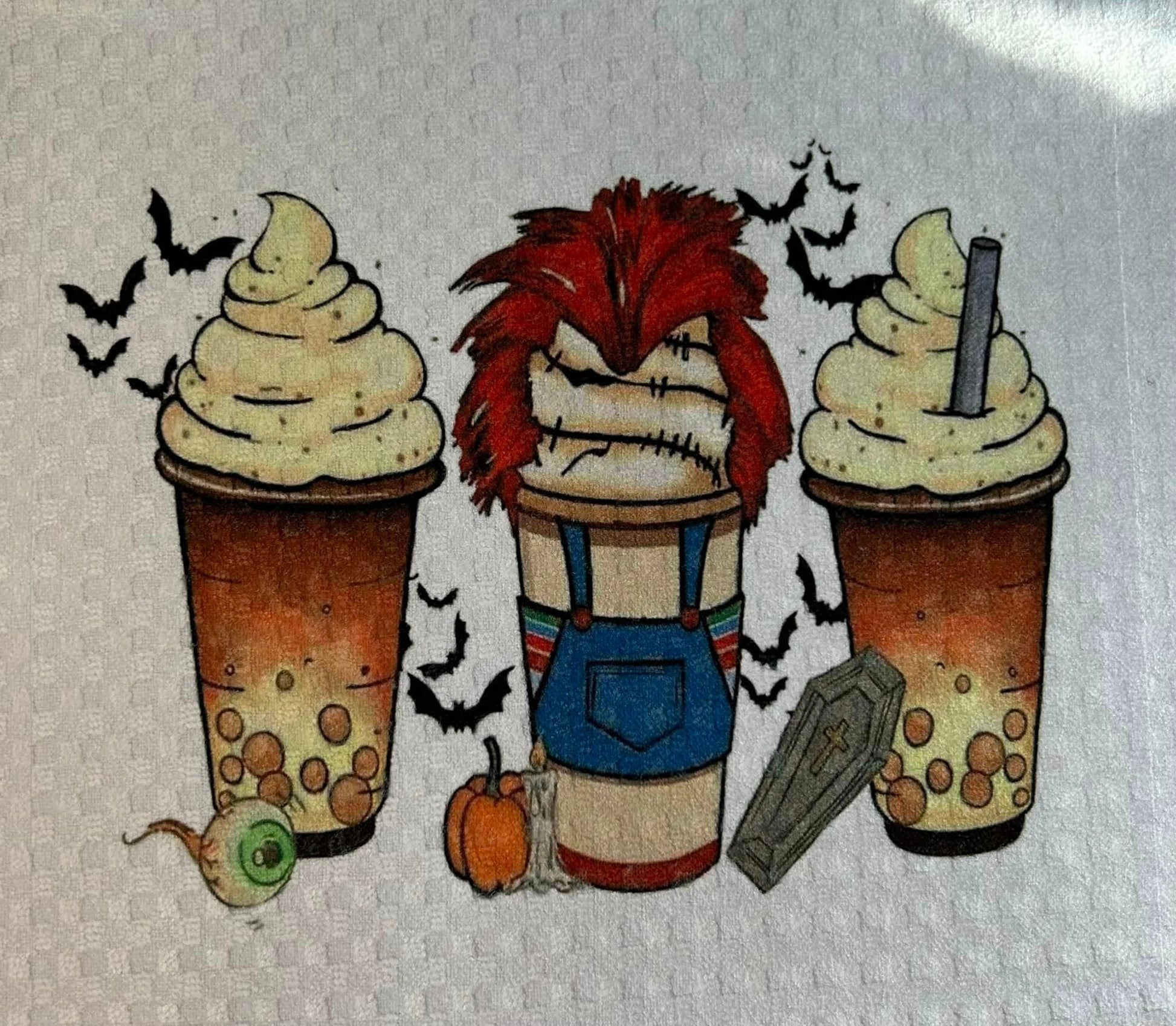 Childs play, Halloween and iced coffee! Towel