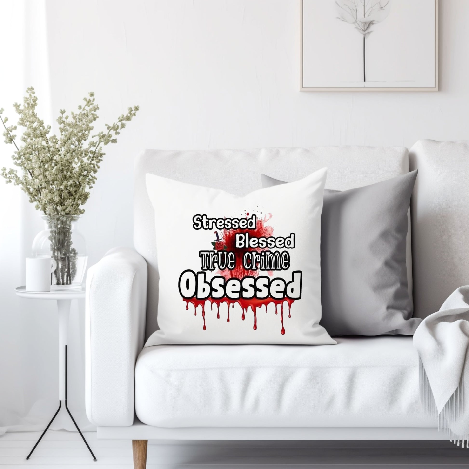 Stressed, blessed and true crime obsessed - Throw Pillow Cover