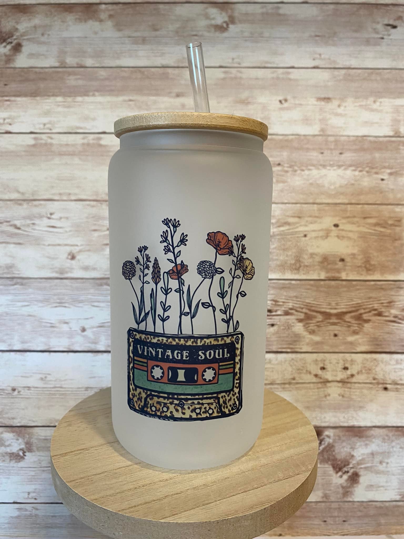 This made by hand, 16 oz drinking glass is perfect for cold drinks, iced coffee, smoothies, juices, or maybe your favorite cocktail! It is still stable for hot drinks as well but be mindful of how hot you make it to prevent cracking of the glass.